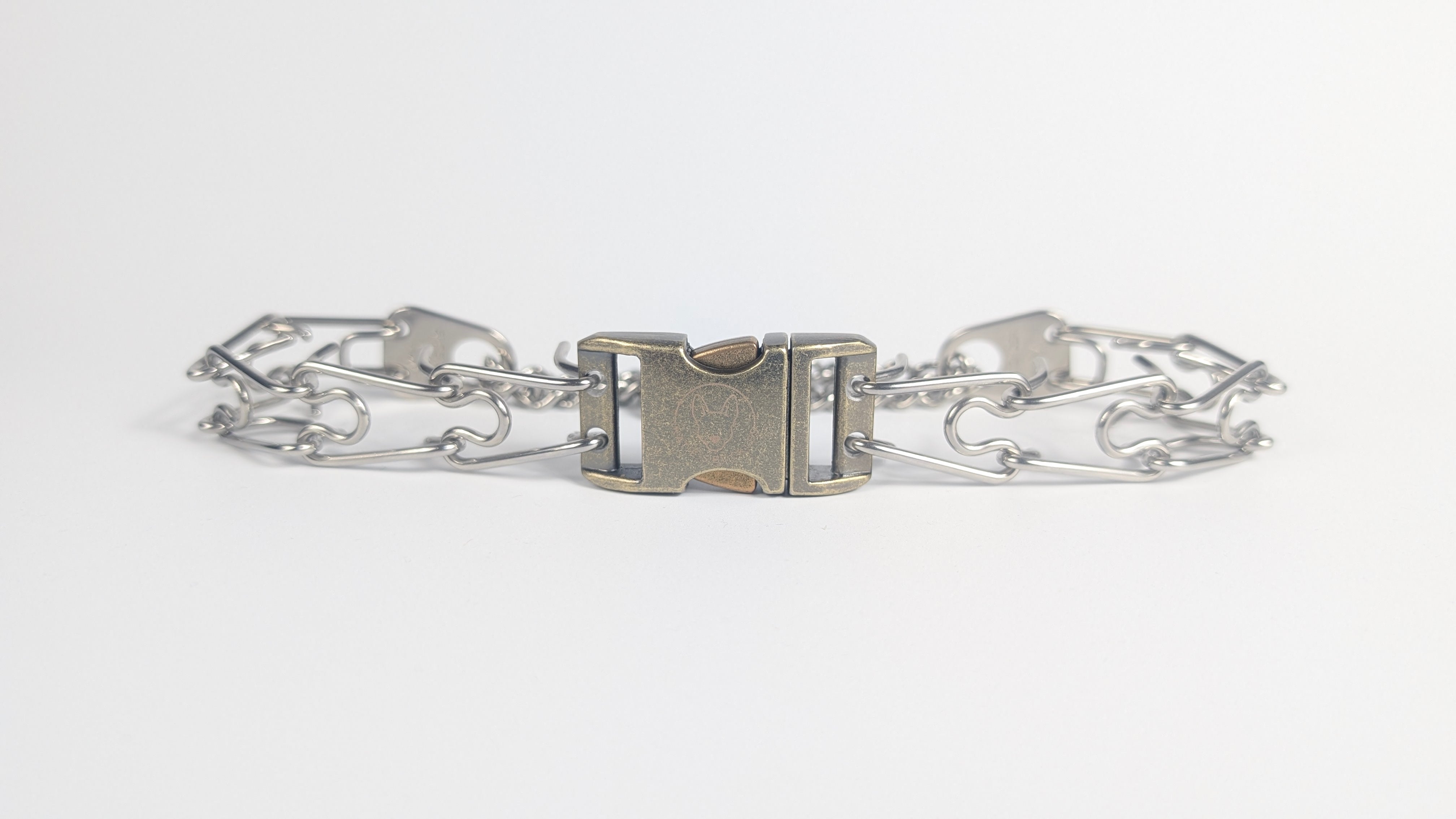 For your safety and your pet's safety, we recommend the following when using any training collar: Always remove a prong collar if your dog is unsupervised, tied up, or playing with other dogs. The buckles and collars are not designed to come off on their own, but for any prong collar, (with a buckle or not), please use a safety back-up method in case your collar does come off during use. Follow recommended weight restrictions for all metal collars. Katie's Buckles is not responsible for any damage or injuries.